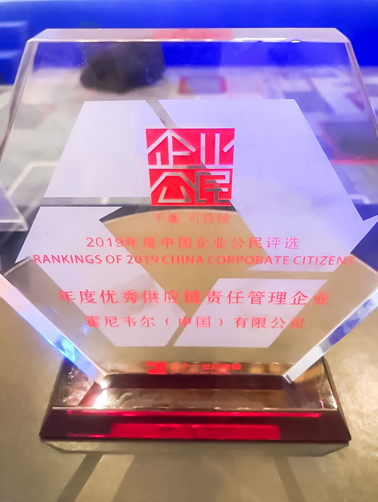 今天在北京舉行“第十六屆中國企業(yè)公民論壇暨2019年度中國企業(yè)公民評選頒獎盛典”。憑借公司在企業(yè)公民實踐和供應商責任管理領域所取得的成績,經《21世紀經濟報道》中國企業(yè)公民評選委員會的評定,霍尼韋爾榮獲2019年度“優(yōu)秀供應鏈責任管理企業(yè)”稱號。