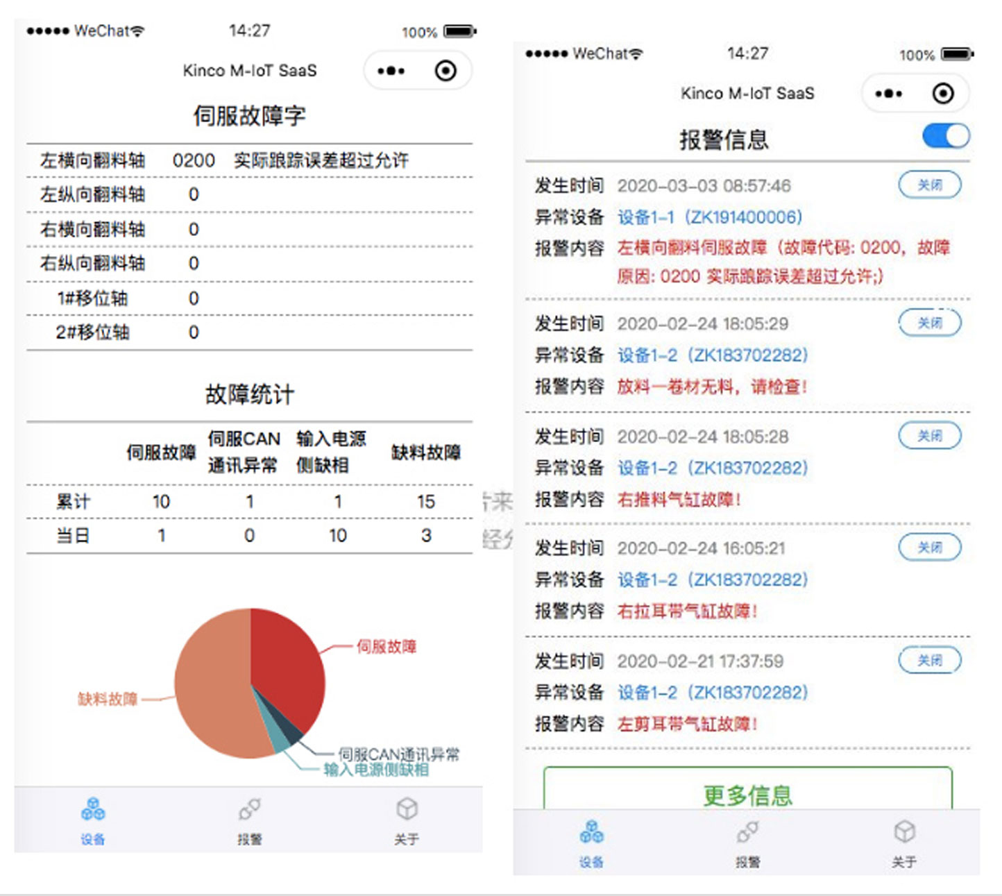 步科口罩機(jī)Plus方案,在CANopen總線伺服驅(qū)動產(chǎn)品基礎(chǔ)上,迅速升級M-IoT物聯(lián)網(wǎng)遠(yuǎn)程運(yùn)維服務(wù),快速完善了設(shè)備報警和維護(hù)信息,增加了遠(yuǎn)程診斷服務(wù)功能,進(jìn)一步打通了現(xiàn)場、設(shè)備商和部件商的溝通渠道,幫助現(xiàn)場人員快速排查故障。