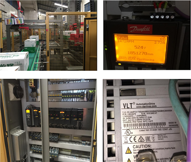 這次在東莞市莞怡食品飲料有限公司(生產(chǎn)怡寶品牌飲用水)的紙箱堆垛機上選用的丹佛斯 FC302+IMC 方案,通過現(xiàn)場實際運行證明 IMC 定位控制功能加上帶有編碼器反饋的異步電機拖動系統(tǒng),可以很好的達(dá)到原設(shè)備的功能和生產(chǎn)要求,客戶也對丹佛斯 FC302 系列變頻器高性能表現(xiàn)給予了強烈的肯定。