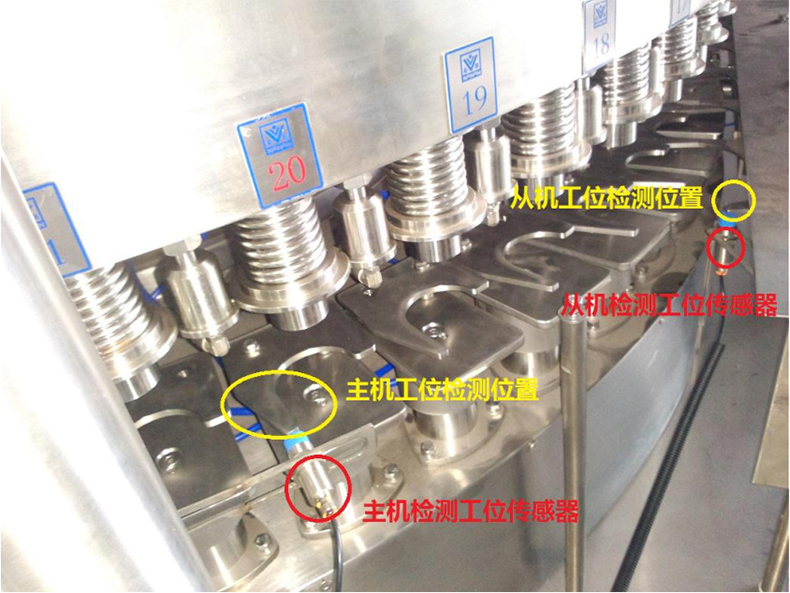 I、主機(灌裝)和從機(封罐)在第一次啟動時,工位自動對齊;