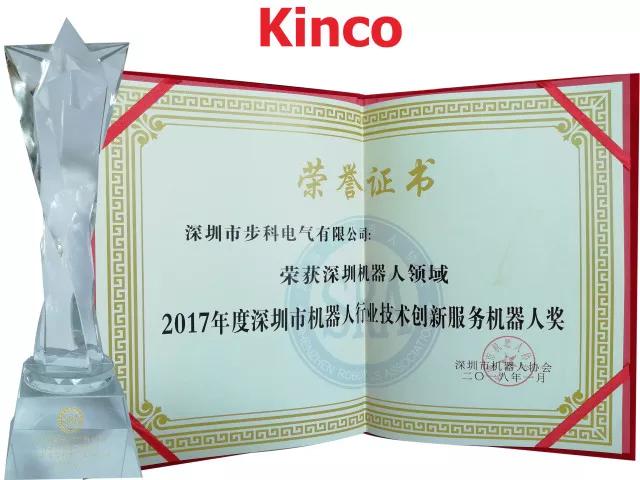 2018年1月16日,憑借良好的綜合評(píng)價(jià)和品牌影響力,Kinco步科榮獲2017年深圳機(jī)器人領(lǐng)域技術(shù)創(chuàng)新服務(wù)機(jī)器人獎(jiǎng)。