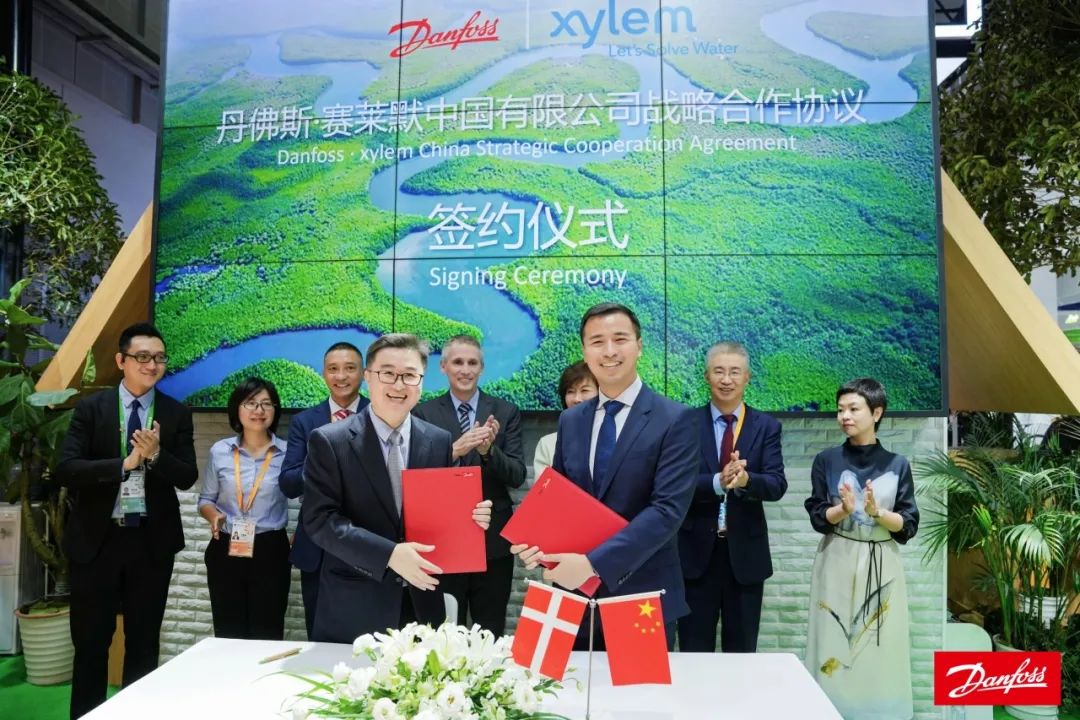 在進(jìn)博會(huì)現(xiàn)場(chǎng),丹佛斯傳動(dòng)與嘉興市水務(wù)集團(tuán)有限公司簽署戰(zhàn)略合作框架協(xié)議,雙方將在水資源綜合治理、碳中和技術(shù)、智慧水務(wù)、人才培養(yǎng)等方面加強(qiáng)交流和合作。同時(shí),還與全球領(lǐng)先水技術(shù)公司賽萊默簽署戰(zhàn)略合作備忘錄,進(jìn)一步加強(qiáng)雙方未來在智慧水務(wù)、智慧樓宇、智慧工業(yè)領(lǐng)域開展戰(zhàn)略合作。
