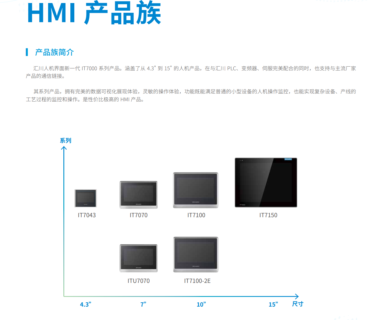 IT7000是匯川基于工控HMI發(fā)展趨勢(shì)研發(fā)的全新一代觸摸屏,在顯示效果上有顯著提升,與傳統(tǒng)HMI相比,IT7000通信更加豐富,功能更加全面,具有更強(qiáng)大的數(shù)據(jù)處理能力和更快的響應(yīng)速度。